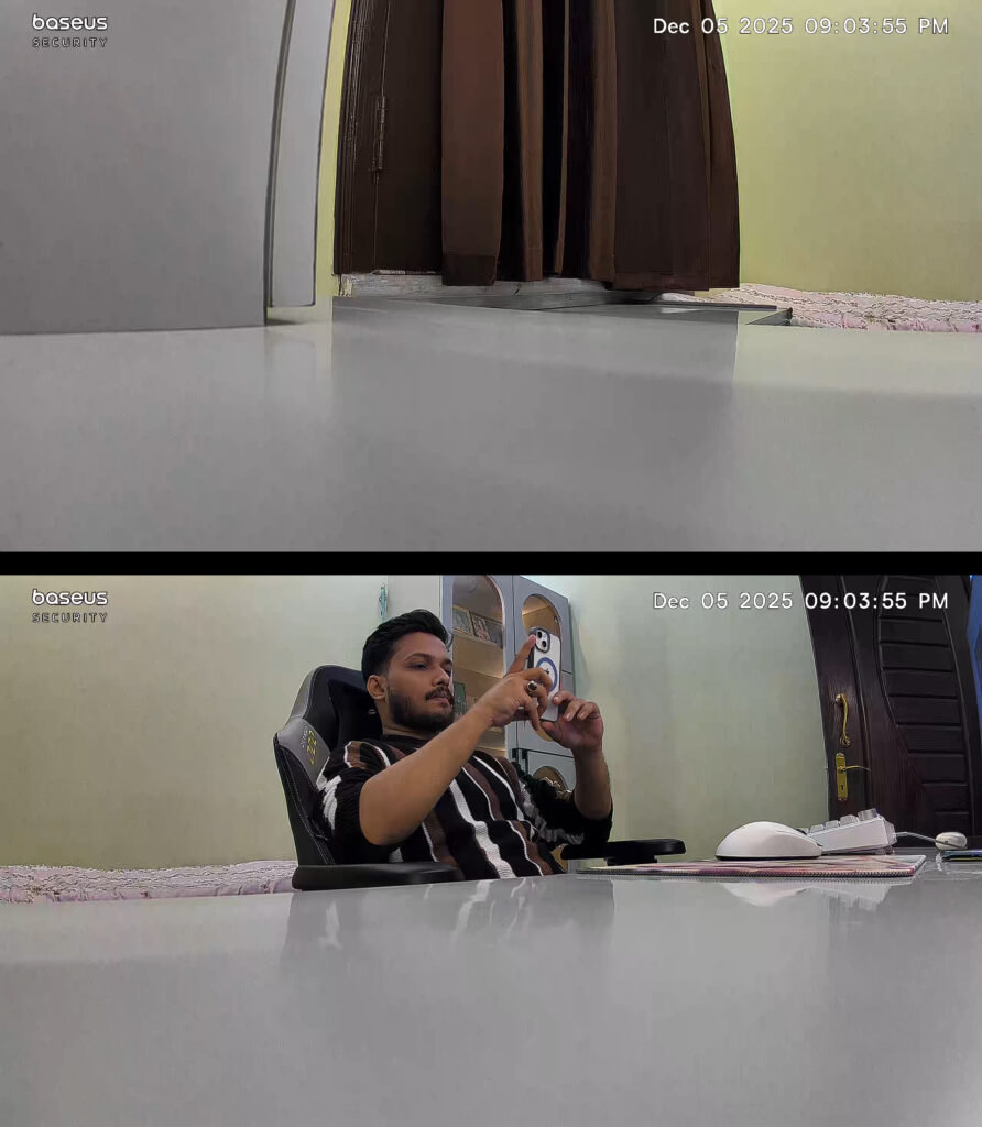 The Baseus Security app is, for the most part, intuitive. You get split-screen live views of both cameras, full-screen landscape mode, and a timeline playback system. Manual camera control lets you pan each lens independently, or you can activate Patrol Mode and let the AI do the work.